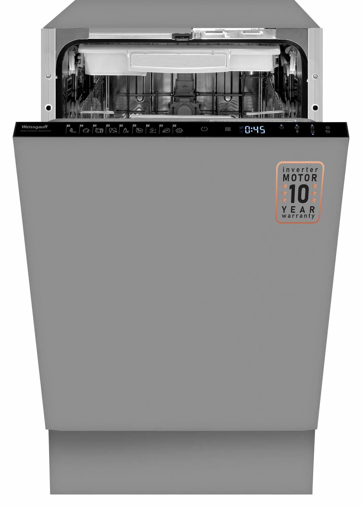 Современная и эффективная посудомоечная машина Weissgauff шириной 45 см оснащена высококлассным инверторным двигателем, специальным лучом INFO LED, тремя функциональными корзинами и обладает вместимостью до 10 комплектов посуды. Удобное электронное управление дополняется интуитивно понятным крупным дисплеем. А 9 эффективных программ (включая 3 автоматических умных режима) всегда помогут подобрать оптимальные настройки в зависимости от типа посуды и уровня загрязненности.