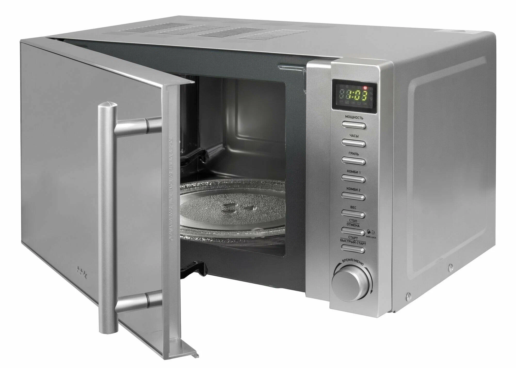 Микроволновая печь BBK 20MWG-733T / BS-M окажется полезна при разогреве пищи и ее приготовлении. Она выполнена известным производителем и обладает сбалансированными характеристиками. Цвет – серебристый, покупателям понравится внешнее исполнение. BBK 20MWG-733T / BS-M обладает мощностью микроволн 700 Вт. При работе она потребляет до 1200 Вт электрической энергии. Камера на 20 литров, она обладает оптимальными габаритами для дальнейшего применения микроволновой печи. В представленной модели используется гриль. Он применяется для приготовления различных блюд, позволяет придать им особый вкус. Присутствуют комбинированные режимы с использованием гриля и микроволн. Предлагается 9 автоматических программ для приготовления. Есть функция разморозки продуктов. Можно отсрочить старт, отложить начало выполнения программы. Блокировка от детей предотвращает возникновения ряда неприятных ситуаций в дальнейшем. Управление происходит при помощи кнопок. Система взаимодействия проста и понятна для пользователей. Присутствует дисплей, на нем выводятся параметры. Можно установить таймер для выполнения программы, максимальное значение – 1 час.