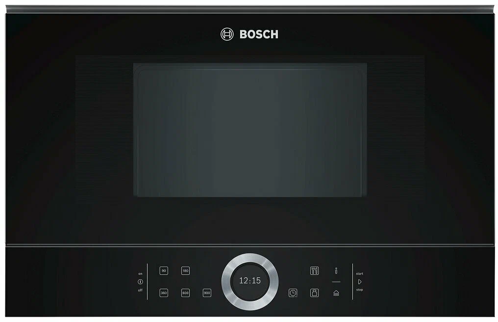 Микроволновая печь Bosch BFR634GB1 — встраиваемая модель в черном исполнении. Устройство устанавливается в специальную нишу в кухонном гарнитуре. Во время работы изделие не нагревается мебель, поэтому является безопасным вариантом. Большой внутренний объем обеспечивает дополнительный комфорт при эксплуатации. Простое и понятное управление с графическими подсказками позволяет быстро настроить рабочие параметры. Сенсоры отличаются высокой чувствительностью, поэтому достаточно легкого прикосновения для активации нужного элемента. Модель оборудована режимами, как для разогрева, так и размораживания. Весовая автоматика позволяет наиболее точно задать рабочие настройки. Микроволновая печь Бош BFR634GB1 оборудована пятью уровнями мощности, поэтому можно подобрать оптимальны вариант для любой задачи.