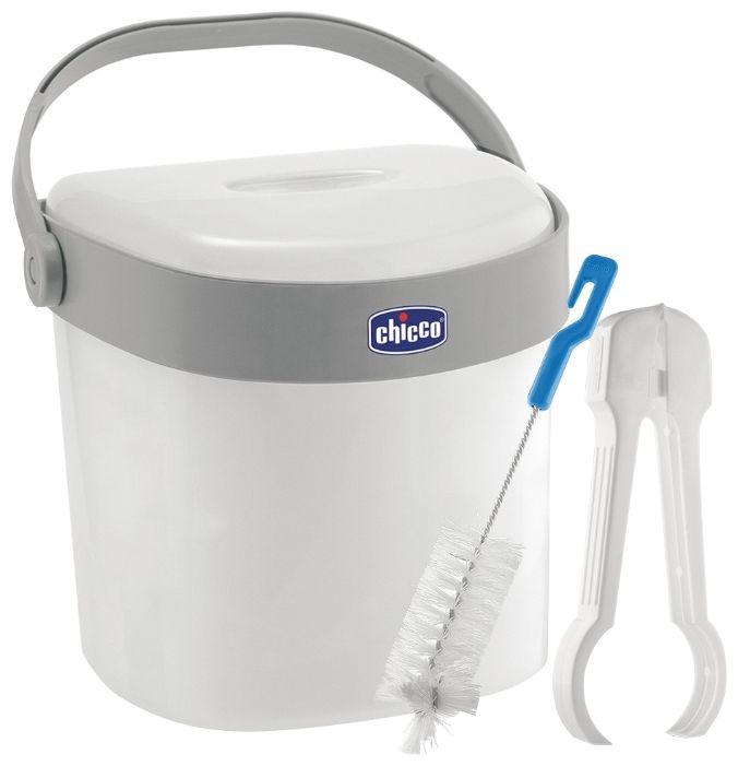 Стерилизатор SterilBoxChicco25519451Подогреватели и стерилизаторыТип: холодный стерилизаторВес: 2 кг Размеры: 22x25x24 см Дорожный: даВместимость (бутылочек): 6 шт Время стерилизации: 60 мин Щипцы в комплекте: даДополнительная информация: ершик для бутылочек, стерилизация фруктов и овощей
