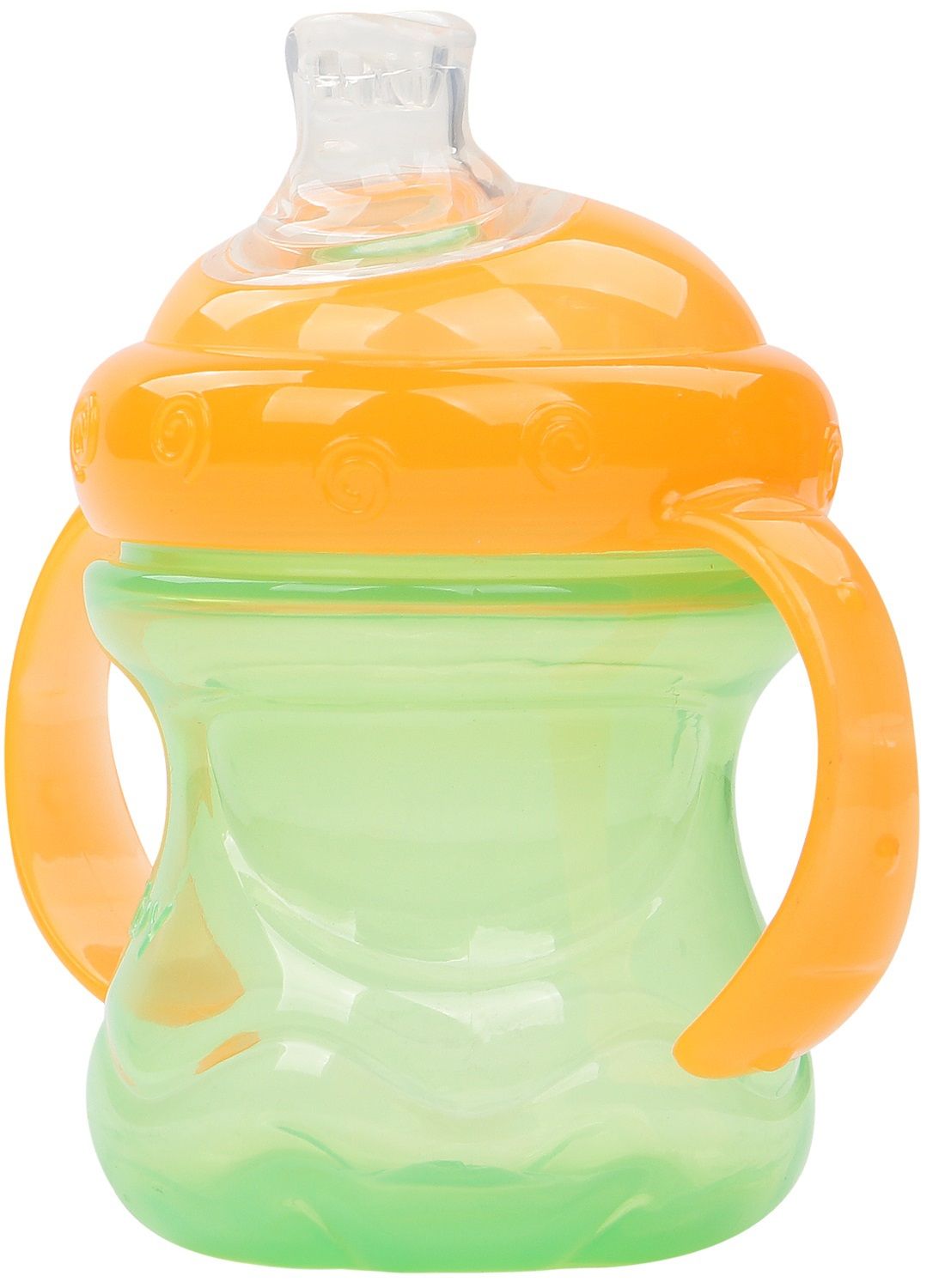 Поильники 240 ml от Nuby для малышей от шести месяцев, которых пора понемногу приучать пить самостоятельно. Модель данного поильника имеет анатомическую форму и удобные съемные ручки, благодаря таким характеристикам ребенок сможет пить соки и другие, рекомендованные ему напитки, самостоятельно под присмотром взрослых. Носик-непроливайка со встроенным клапаном исключает захлебывание малыша жидкостью, а так же не травмирует зубы и десны ребенка.  Во время использования ребенком поильника с силиконовым носиком жидкость из чашки поильника от Nuby не течет и не капает.