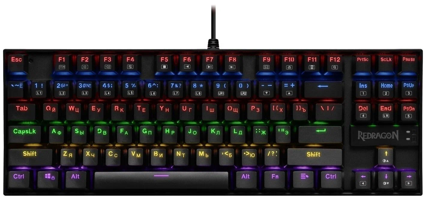 KumaraRedragon118340398Игровые клавиатурыИнтерфейс подключения: USBТип связи: проводнаяКоличество клавиш: 87 штКоличество дополнительных клавиш: 12Подсветка клавиш: даРазмеры: 12.30 x 3.70 x 35.40
