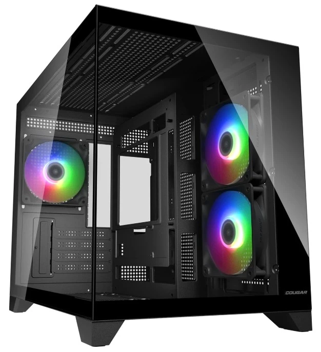 Максимальная видимость сборки, компактная форма. Cougar FV150 Mini сочетает в себе эстетику и функциональность двухкамерного корпуса, что позволяет использовать его в условиях ограниченного пространства. Стеклянная панель основного отсека улучшает обзор сборки, а второй отсек незаметно скрывает компоненты. Совместимость с материнскими платами с обратным разъёмом позволяет создавать конфигурации без кабелей.