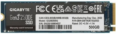 AORUS 2500E 500GB M.2 G325E500GGigaByte128913664GigabyteНазначение: для ПК, для ноутбукаФорм-фактор HDD: M.2 2280Объем: 500 ГбСкорость записи/Скорость чтения: 1500/2300 Подключение: PCIe 3.0 x4