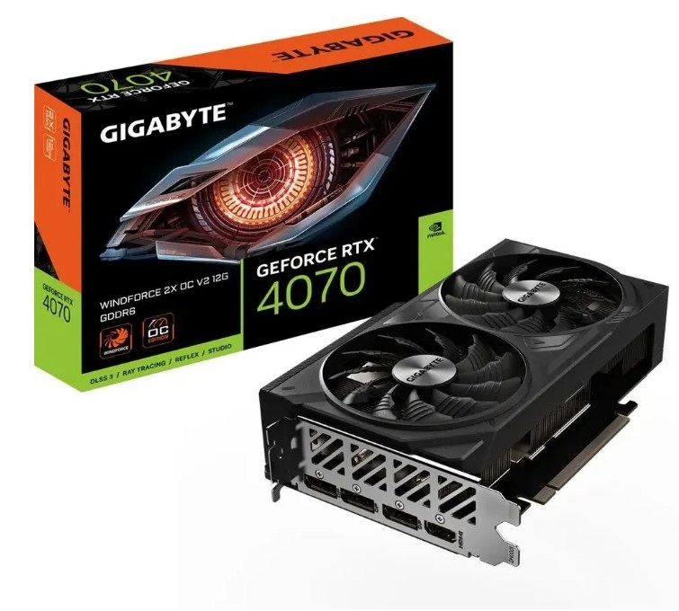 GeForce RTX 4070 WINDFORCE 2X OC V2 12G 2490MHz PCI-E 4.0 12288MB 20000MHz 192bit HDMI 3xDisplayPort HDCP GV-N4070WF2OCV2-12GD