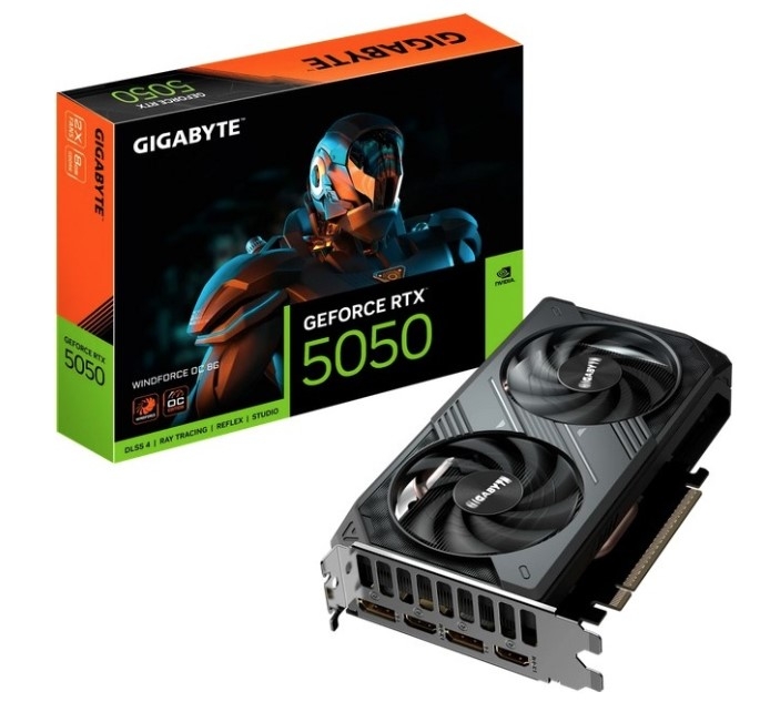 GigaByte GeForce RTX 5050 WINDFORCE OC 2587MHz PCI-E 5.0 8192MB 128bit 2xHDMI 2xDisplayPort GV-N5050WF2OC-8GD