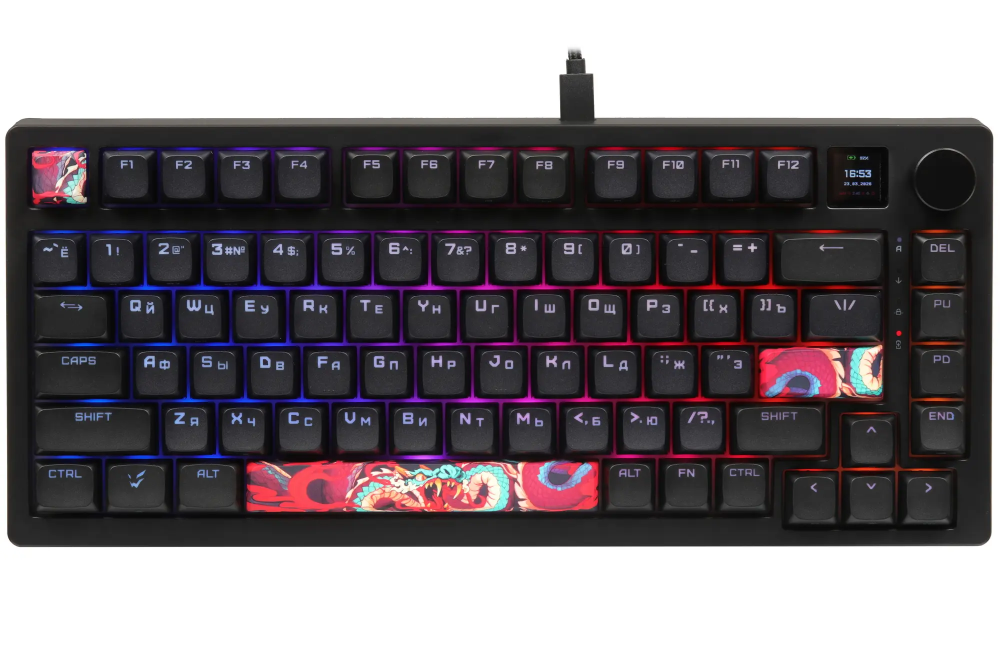 Клавиатура беспроводная ARDOR GAMING Kusanagi (AG-ZD-KU81AR-B-HS-GM-DS) черная – это механическая модель формата 75% с 83 клавишами. Устройство оснащено линейными переключателями ARDOR Plum. Они обеспечивают мгновенный отклик на команды пользователя благодаря силе нажатия 45 гс. Ресурс переключателей составляет 80 млн кликов. Технология Hot Swap позволяет заменять их без пайки.