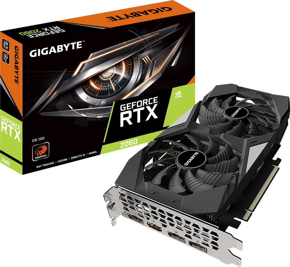 GIGABYTE GeForce RTX 2060 D6 12G оснащена графическим процессором GeForce RTX 2060, произведенным с использованием техпроцесса 12 нм. разработана на основе архитектуры Turing. Благодаря наличию тензорных и RT-ядер поддерживается технология трассировки лучей для более глубокой прорисовки деталей и обеспечения реалистичности освещения и отражения в игровых сценах. Видеокарта оснащена 12 ГБ видеопамяти GDDR6, что обеспечивает высокую производительность при запуске игр. Разрядность шины памяти составляет 192 бита, а пропускная способность достигает 336 Гбайт/с.