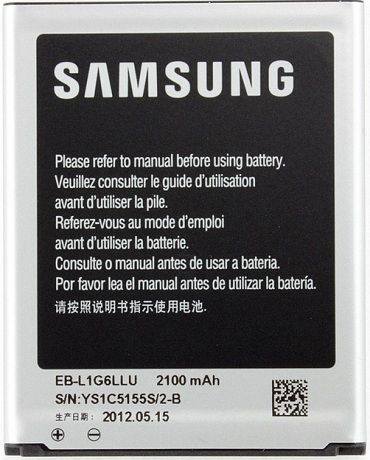 Аккумулятор EB-L1G6LLUSamsung1876177АккумуляторыПроизводитель: SamsungТип аккумулятора: Li-IonЕмкость: 2100 Совместим с моделями:: Samsung Galaxy S3 i9300