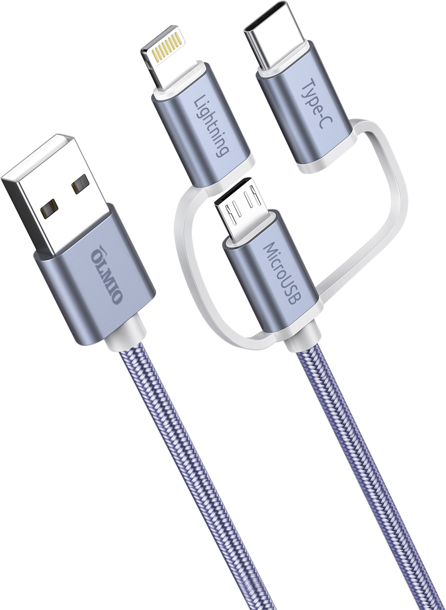 OLMIO Кабель 3-в-1 USB - microUSB/ 8pin/ Type-C, 2.1A