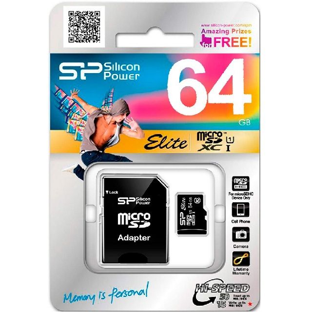 Карта памяти microSDHC 64Gb Elite от компании Silicon Power является универсальным носителем информации, который вы сможете использовать со всеми совместимыми устройствами, которые поддерживают данный формат карт памяти. Купив такую карту памяти, вы без проблем теперь сможете хранить фотографии, музыку и видео, а также и другие цифровые данные. В первую очередь, эта карта памяти microSDHC 64Gb Elite от компании Silicon Power рассчитана для использования совместно со смартфонами, телефонами и другими устройствами, которые имеют слот для носителей формата microSDHC. Они позволят без ограничений использовать мультимедийные возможности современных электронных устройств.