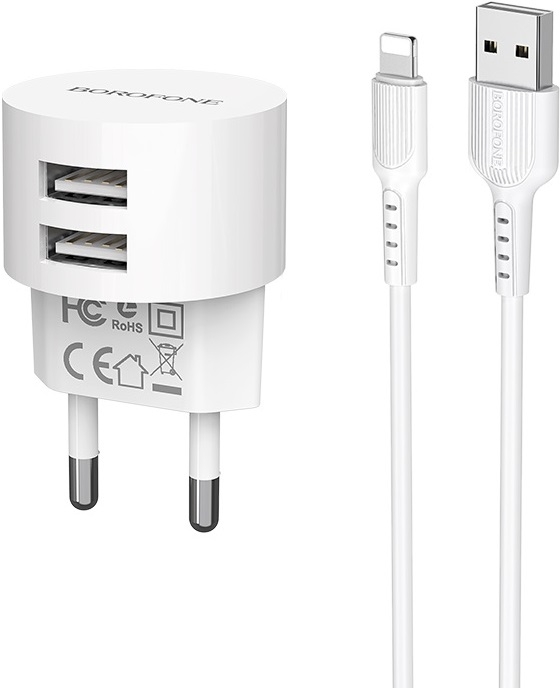 Borofone Сетевое зарядное устройство BA23A Brilliant 2USB + кабель 8pin, 2.4A