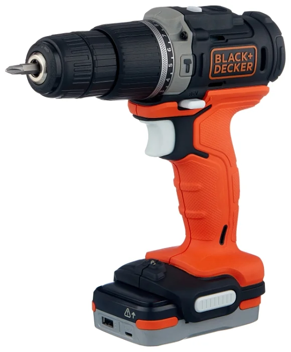 Ударная аккумуляторная дрель-шуруповерт BDCHD12S1 40 Н·мBlack & Decker77847858Дрели и шуруповерты сетевыеВес: 1.2 кгОсобенности: USB-порт на аккумуляторе для зарядки мобильной техники с током до 2,4А