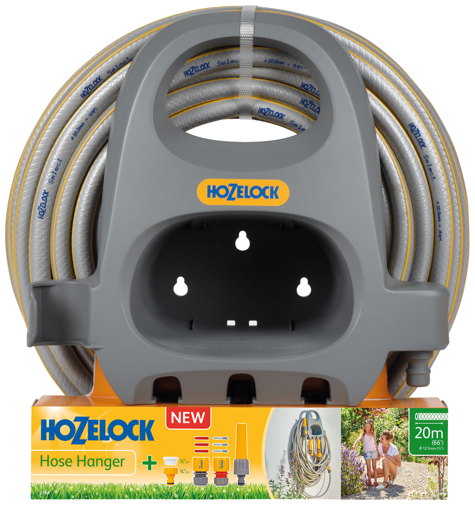 Держатель HoZelock 2364 — отличное решение для удобного хранения шланга, коннекторов и наконечников. Держатель крепится к стене шурупами, поэтому на него удобно наматывать шланг, а коннекторы и наконечники с охватываемым соединением «папа» надёжно фиксируются в нижних отверстиях держателя.
