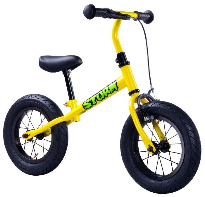 Беговел StormToyz25960194БеговелыДополнительно: размеры велобега: 86х36 см, размеры седла: 17х11 см, ширина шины 5,5 см; ручной передний тормозВозраст ребенка: 2 - 6 лет Материал рамы: стальДиаметр колес: 12"Вес: 3.9 кг Регулировка высоты руля: даВысота рулевой стойки: 59 - 66.5 см Регулировка высоты седла: даВысота седла: 37.5 - 48.5 см Шины: надувные