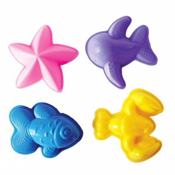 Красочные формочки в морском стиле отлично подойдут для игры в песочнице. В набор входят четыре формочки в виде рака, звезды и рыб. С новыми игрушками малышам будет интересно изучать цвета и формы в игровой форме. Игры в песочнице развивают фантазию и мелкую моторику. Все игрушки изготовлены из качественной и прочной пластмассы, имеют различные цвета.
