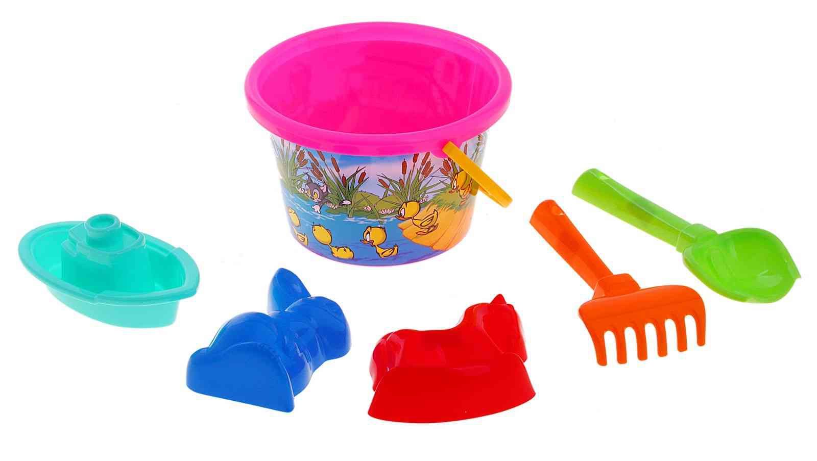 В игровой набор №251 входит ведерко с красивой мультяшной картинкой, маленький совок, грабли, две формочки в виде зверей и кораблик. Это отличный набор, в котором есть все необходимое для игры в песочнице, а еще с ним можно играть у воды. Ребенок научится делать красивые куличики, строить замки или запускать кораблик в плавание. Набор изготовлен из качественной, прочной пластмассы, выполнен в яркой цветовой гамме.