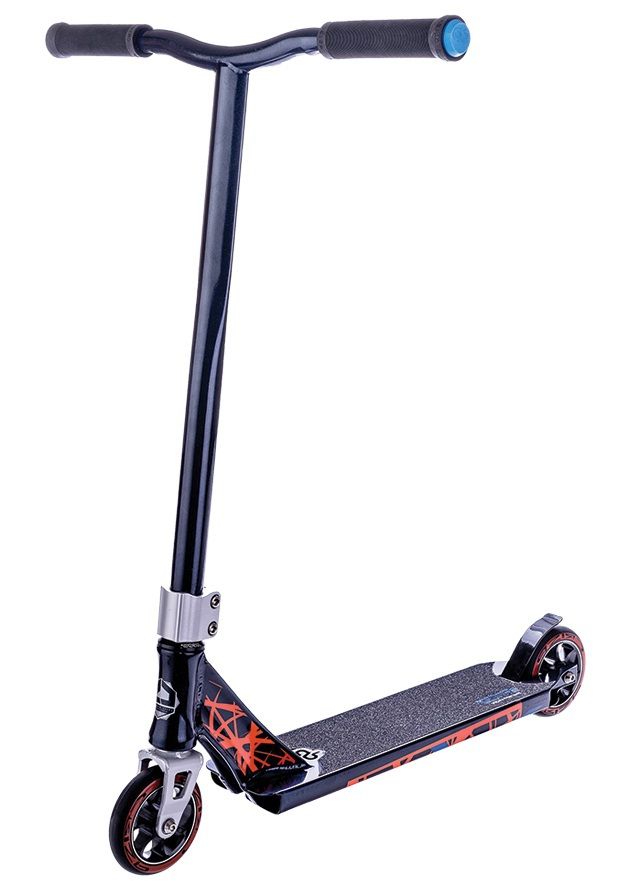 Трюковый самокат для спортивной езды предназначен для начинающих экстремальщиков. У самоката подшипники класса ABEC 9, которые дают хороший накат и скорость. Дека самоката покрыта специальным антискользящим средством, препятствующим скольжению ног, что обеспечиивает безопасность со время езды. Модель оснащена двухболтовым хомутом для надежного и прочного крепления руля. Ручки самоката с прорезиненными грипсами. У изделия двухсоставная вилка и система компрессии, что делает самокат подвижным и надежным уличным средством передвижения. Кататься на таком самокате могут как взрослые, так и дети. Приобрести самокат можно у нас по доступной цене.