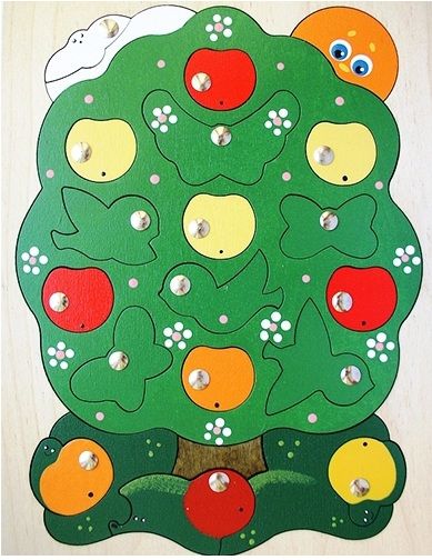 Магнитная мозаика "Яблоня-загадка" без сомнения надолго увлечёт вашего кроху. Мозаика состоит из 23 детали, деревянной подложки и 2 удочек. Перед малышом стоит задача при помощи деревянной удочки собрать урожай яблочек, а также поймать птичек и бабочек, которые спрятались в листве. Угадает ли малыш по очертаниям, кто спрятался в листьях?