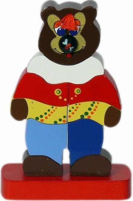 Увлекательная пирамидка "Топтыгин" без сомнения понравится вашему ребёнку. Поначалу крохе будет проще разбирать пирамидку, а потом, он приноровится и собирать. Правая и левая нога медвежонка имеют отдельные штырьки на которые нанизываются по 5 деталей, а голова целиковая одевается сверху.
