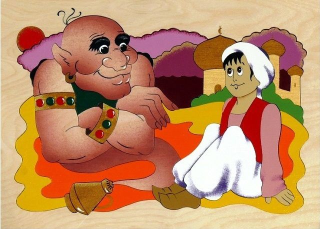 Мозаика "Алладин" - это сюжет одноименной всеми любимой сказки. На ней изображён Алладин, который вызвал джина и загадывает ему свои желания. А вы помните, какие желания загадал главный персонаж? Мозаика состоит из 40 деталей, которые необходимо собрать на деревянном основании. Знакомые красочные персонажи не оставят ребёнка равнодушным.