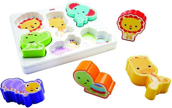 Сортер Fisher Price от Mattel поможет малышу понять, как следует соотносить размер и форму предметов. Сортер представляет собой плоскую прямоугольную дощечку с выемками, в которые малыш должен будет вложить фигурки, соответствующие формам и размерам выемок. Крупные формочки для сортера сделаны в виде животных с забавными рожицами. На каждой выемке дощечки есть рисунок, идентичный рисунку на формочке.