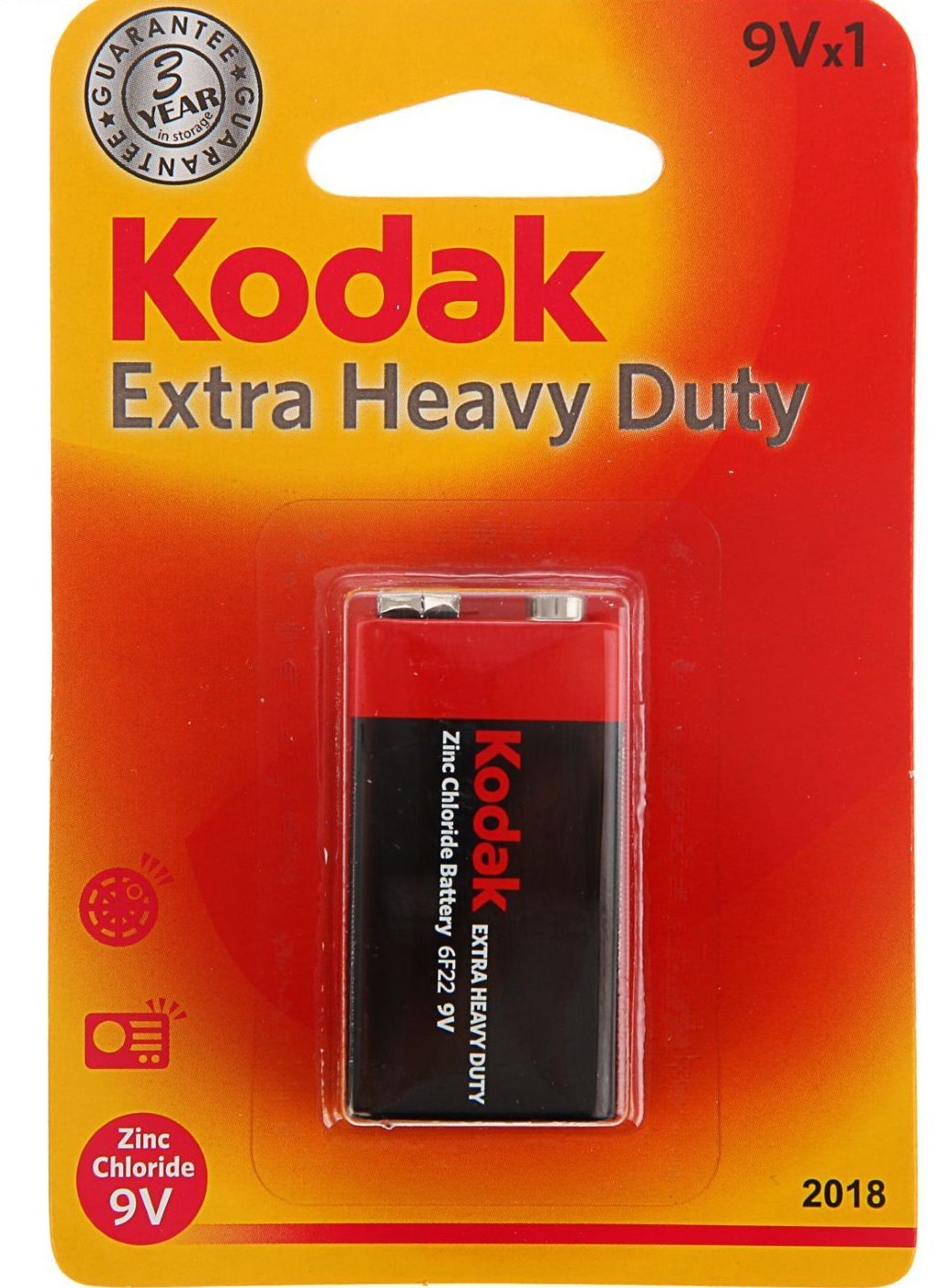 Батарейки Extra Heavy Duty 6F22, 1 шт. Kodak