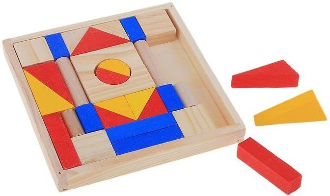 Конструктор, состоящий из множества разных геометрических фигур, должен быть у каждого малыша. Предлагаем Вам один из таких конструкторов от "Симы". В наборе есть кубики, бруски, детали овальной и треугольной формы. Каждая деревянная деталь от "Симы" имеет насыщенный цвет и гладкую фактуру.