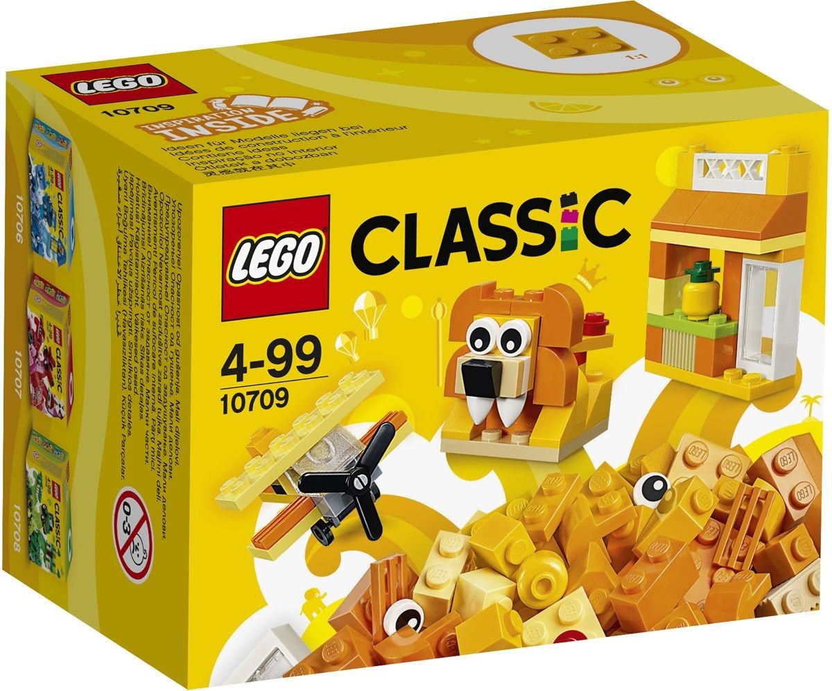 Еще один конструктор из серии Classic от Lego, выполненный в одном цветовом решении. На этот раз Lego предлагает Вашему вниманию солнечный, оранжевый набор деталей. Цвет единственно верный для конструирования фруктов или зверей, имеющих рыжий/оранжевый окрас (львы, тигры, лисы). Кроме того, конструктор с таким цветом обязательно увлечет ребенка, который скучает по летнему солнышку. Некоторые детали конструктора серии Classic от Lego кардинально отличаются по цвету от основной гаммы оранжевых деталей, поэтому Ваши постройки будут еще выразительнее.