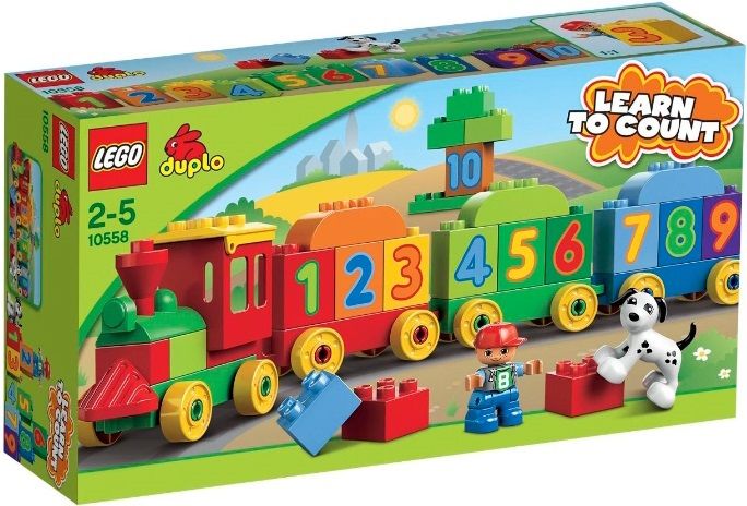 Прежде всего, ребенку надо сконструировать яркий паровоз из блоков конструктора серии Duplo от Lego. На стороны каждой детали нанесены цифры и математические знаки. Сначала малыш запоминает цифры, а немного позже, с помощью родителей, учится сложению и вычитанию в пределах цифр от 1 до 10. А главными героями игры "Считай и играй" серии Duplo от Lego станут две фигурки - смешной человечек и пес с окраской далматинца.