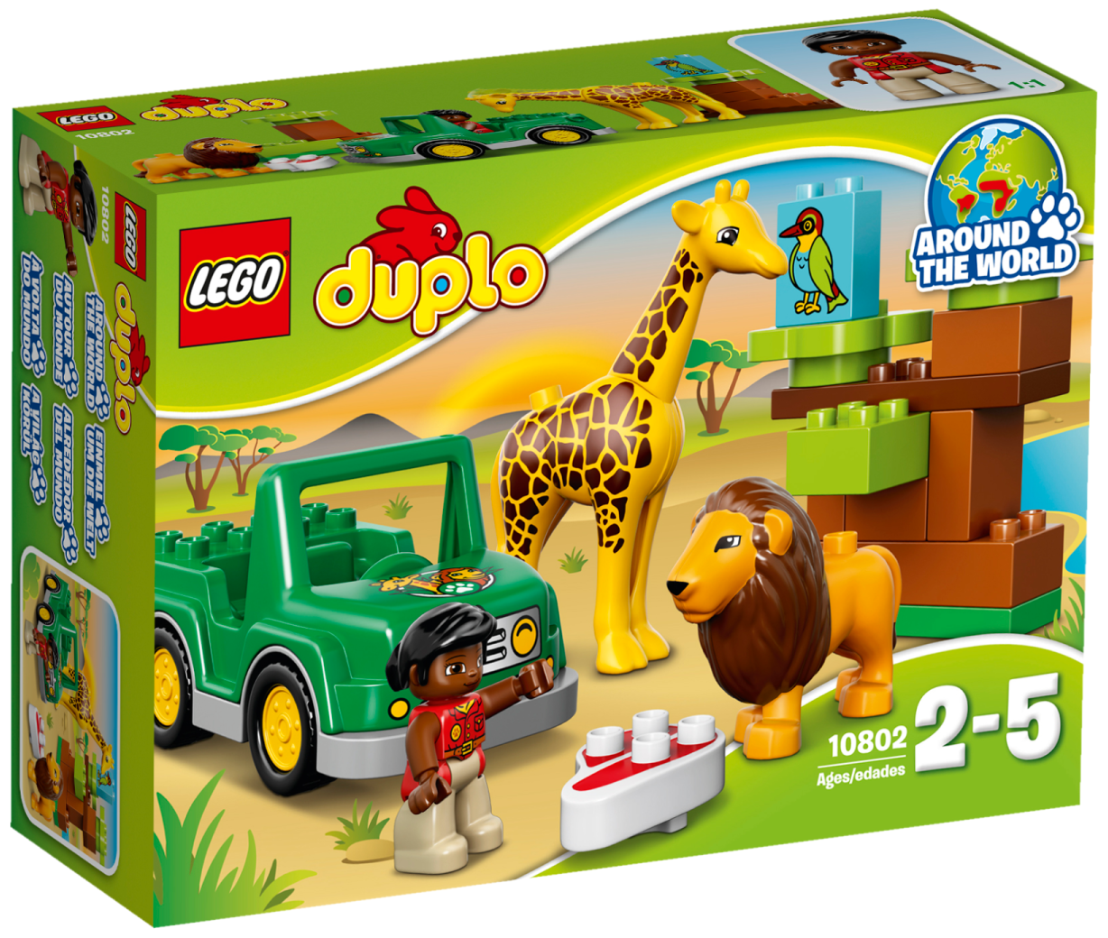 Из блоков конструктора из серии Duplo от Lego дети сконструируют несколько массивных африканских растений. На один из блоков нанесено изображения попугая. В наборе есть несколько фигурок. Фигурки льва, жирафа и, самая замечательная фигурка - фигурка чернокожего, симпатичного малыша. После того, как собраны деревья и расставлены фигурки от Lego по своим местам, ребенку надо будет выполнить еще одну работу, а именно, самостоятельно собрать джип. Теперь можно отправляться в поездку - сафари на джипах по Африке!