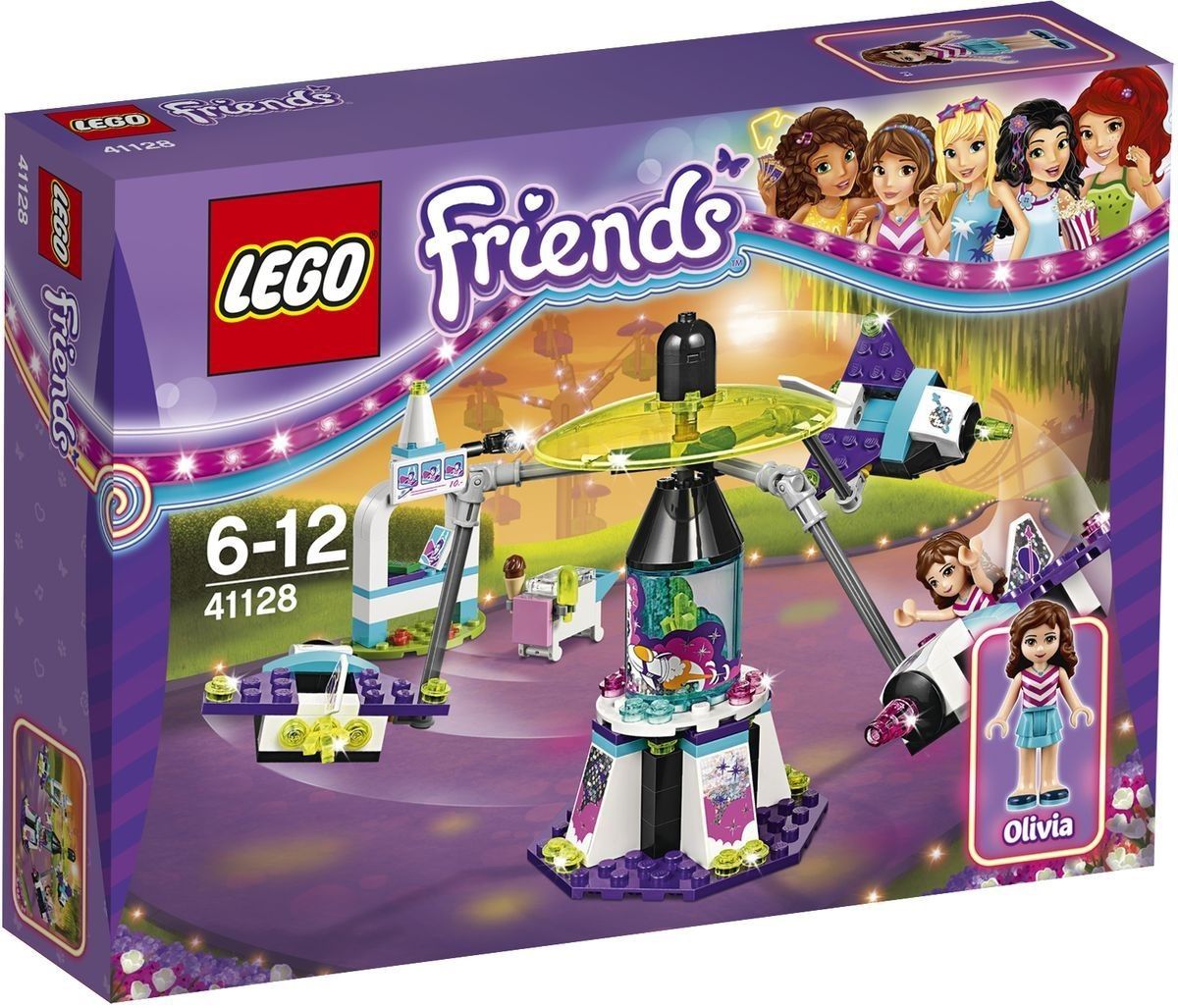 В парке развлечений серии Friends от Lego построили необычный аттракцион, который называется "Космическое путешествие". Кататься на нем будет фигурка куколки Оливии, которая живет в Хартлейк Сити. Аттракцион будет выглядеть, как огромная ракета, к которой прикреплены два самолетика. Готовая игрушка Friends от Lego будет механической, ракета будет подниматься вверх, а самолеты закружат Оливию.