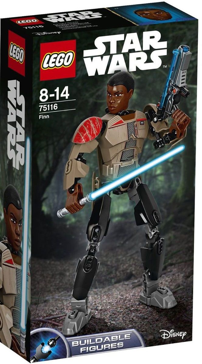 Еще один интересный персонаж "Звездных Войн", фигурку которого предлагает Вам сконструировать Star Wars от Lego. Фигурка Финна получится высокой и полностью подвижной. Подвижность фигуры достигается шарнирными соединениями деталей. Герой Star Wars от Lego сможет переставлять ноги, двигать руками и поворачивать голову. На спине фигурки есть особый механизм, позволяющий герою делать взмах рукой. Лицо и детали костюма Финна отчетливо прорисованы художником.
