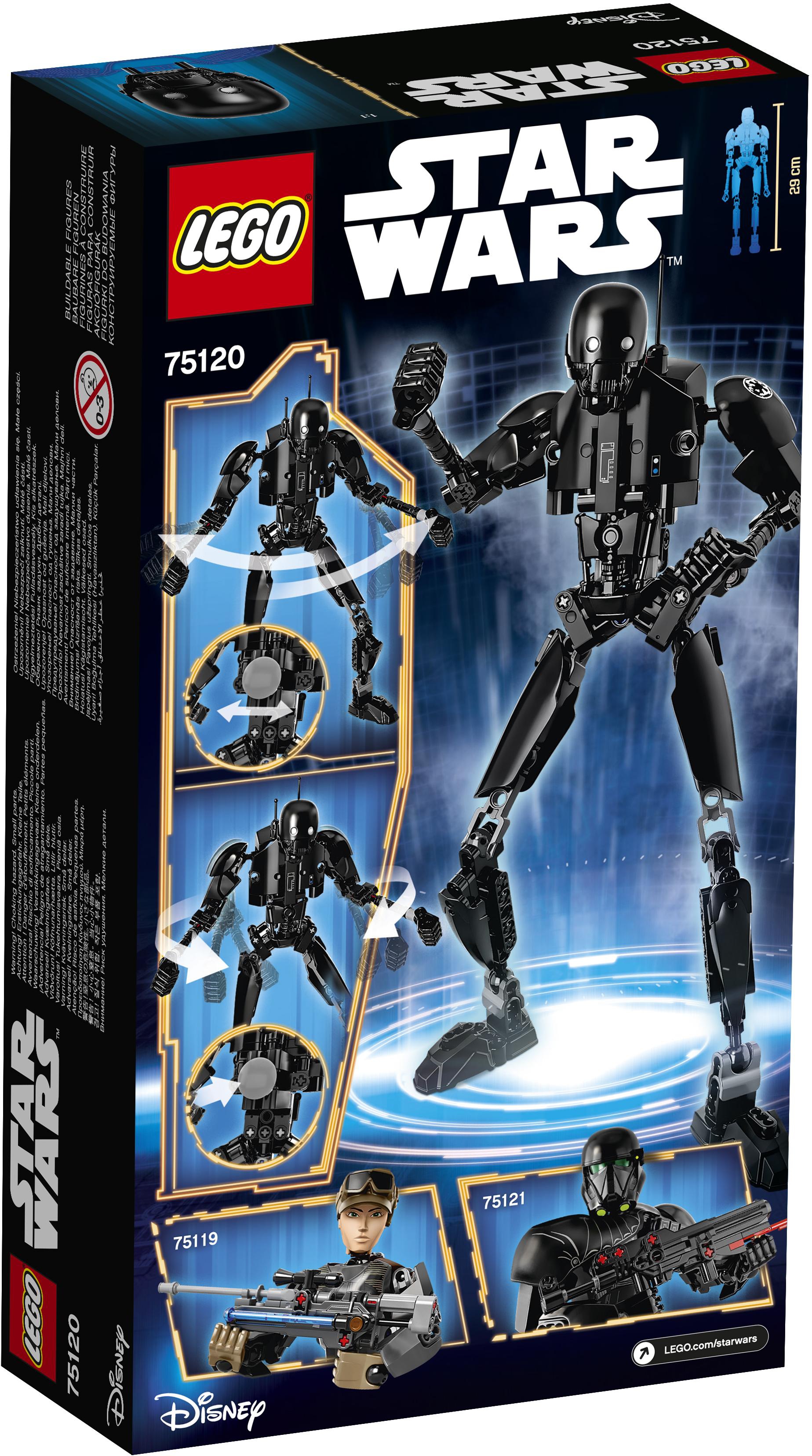 Star Wars от Lego предлагает Вам собрать фигурку перебежчика K-2SO. Устрашающая модель бывшего дроида, собирается из фигурных деталей и шарниров, поэтому Ваш K-2SO сможет двигать ногами и руками, поворачивать голову, сгибать ноги в коленях. На спине модели есть рычаг, если его повернуть, то персонаж сможет сделать взмах рукой или, в другом положении рычага, сможет привести в движение обе руки. Фигура Star Wars от Lego получится достаточно прочной для Вашей сюжетно-ролевой игры. Кроме того, Lego прилагает к деталям для сборки K-2SO макет фантастического бластера.
