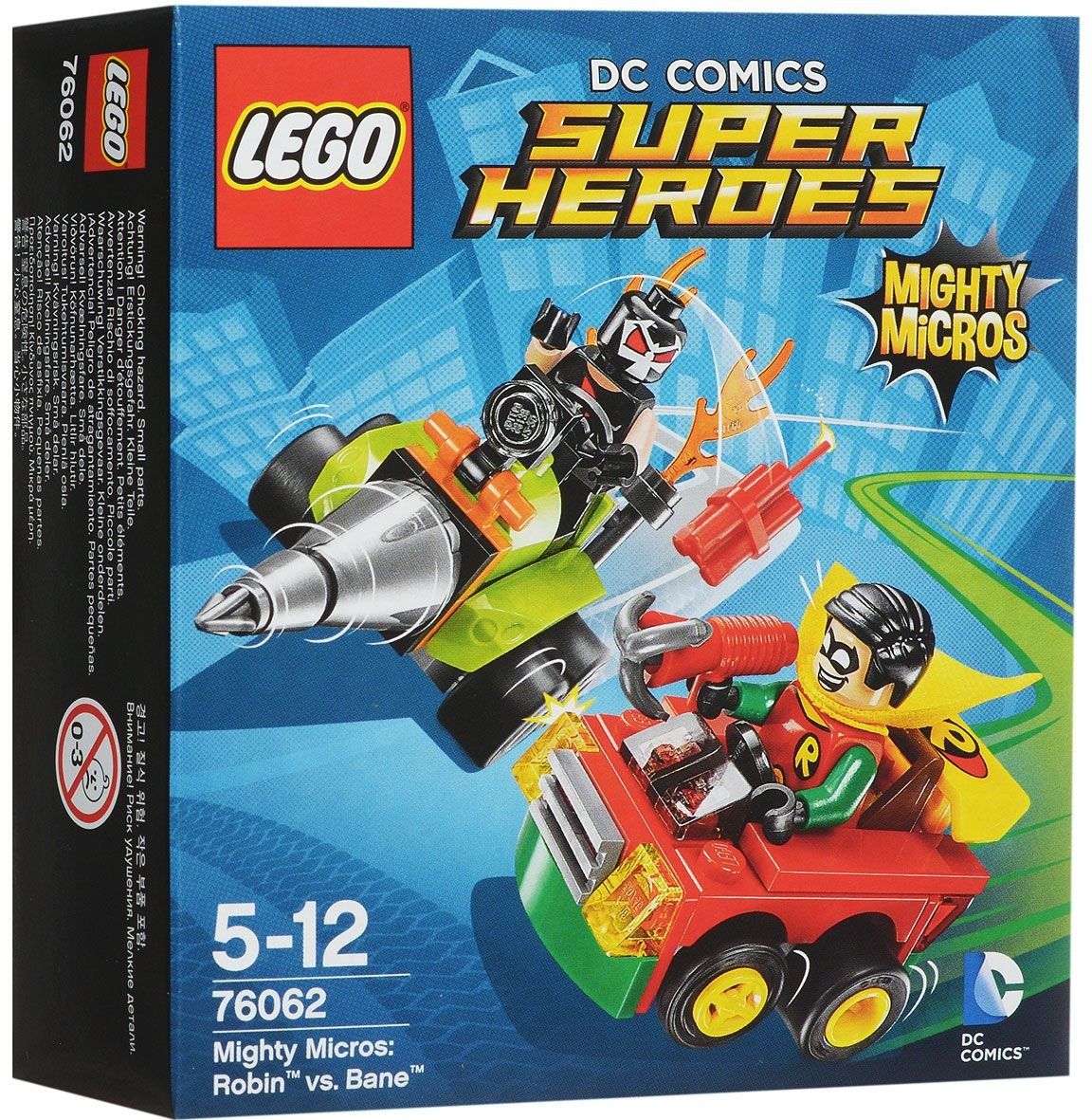 Небольшой набор конструктора Super Heroes от Lego, который порадует даже самых маленьких поклонников сериалов о супергероях. В играх, которые дети придумают и разыграют, будет два персонажа – фигурка Робина и фигурка Бэйна. Фигурки Lego узнаваемы за счет костюмов и игровых аксессуаров. Ребенок сможет двигать ручки и ножки человечков, поворачивать их голову, не боясь сломать фигурку.