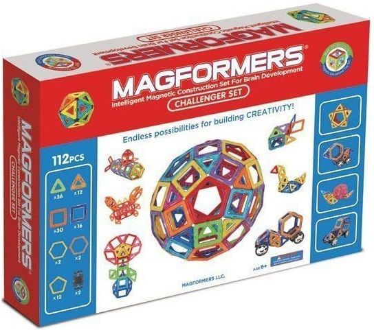 Magformers представляет Вам магнитный конструктор "Challenger", из крупных деталей которого ребенок смастерит множество разнообразных построек. Детали конструктора крупные. Плоские элементы конструктора разнообразны: шестигранники, треугольники, квадраты и др.
