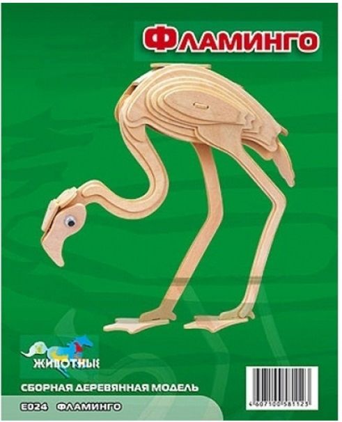 Российская фабрика "Мир деревянной игрушки" предлагает Вам целую серию игрушек из дерева: зверушки, насекомые, транспорт, динозавры и др. На этот раз, Вам предстоит собрать деревянную модель великолепного фламинго от "Мира деревянных игрушек". Собирается фламинго, как 3D-пазл. Материал для сборки не окрашен. Пронумерованные детали для сборки извлекаются из пластин.