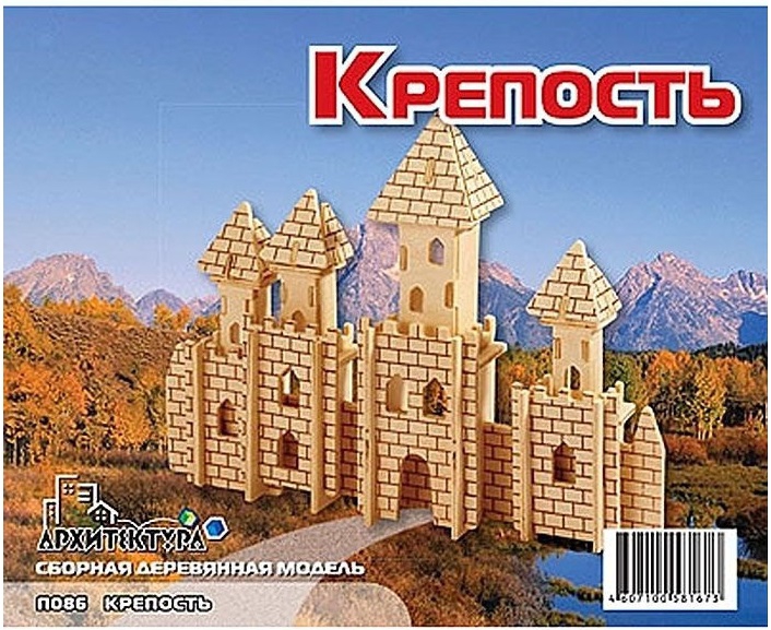 Соберите деревянную модель старинной крепости от "Мира деревянных игрушек". Материал для сборки крепости не окрашен. Детали для сборки извлекаются из пластин.