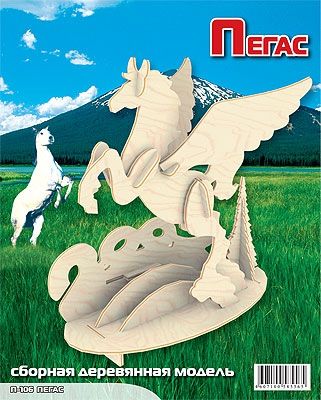 Обратите внимание на деревянную модель Пегаса. Собирается Пегас от "Мира деревянных игрушек" по принципу пазла. Модель не окрашена. Детали для сборки расположены в пластинах.