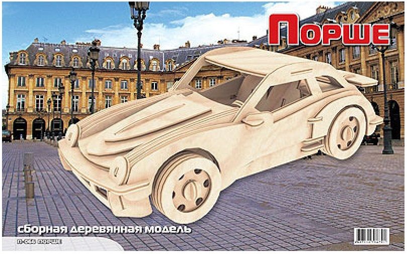 Соберите деревянную модель стилизованного автомобиля "Порше" от "Мира деревянных игрушек". Собирается автомобиль, как 3D-пазл. Материал для сборки не окрашен. Детали для сборки извлекаются из пластин. Производитель рекомендует использовать клей для сборки.