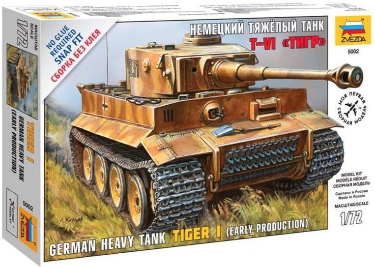 Сборная модель танка "Тигр"Звезда18134825Сборные моделиТематика: танкиВозраст: 7 - 99 летПол ребенка: для мальчиковТип деталей: фигуркиКоличество деталей: 63 шт.Материал: пластикСтрана-производитель: РоссияМасштаб: 1:72Комплектация: детали, инструкция по сборкеРазмеры упаковки: 25.8 x 16.2 x 3.8 смДлина собранной модели: 13 см