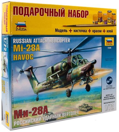 Сборная модель вертолета "Ми-28А"Звезда19000841Сборные моделиТематика: вертолетыВозраст: 7 - 99 летПол ребенка: для мальчиковТип деталей: фигуркиКоличество деталей: 103 шт.Материал: пластикТребуется клей для сборки: даСтрана-производитель: РоссияМасштаб: 1:72Комплектация: элементы для сборки, аксессуары, инструкция, клей, краски, кисточкаДлина собранной модели: 23 см