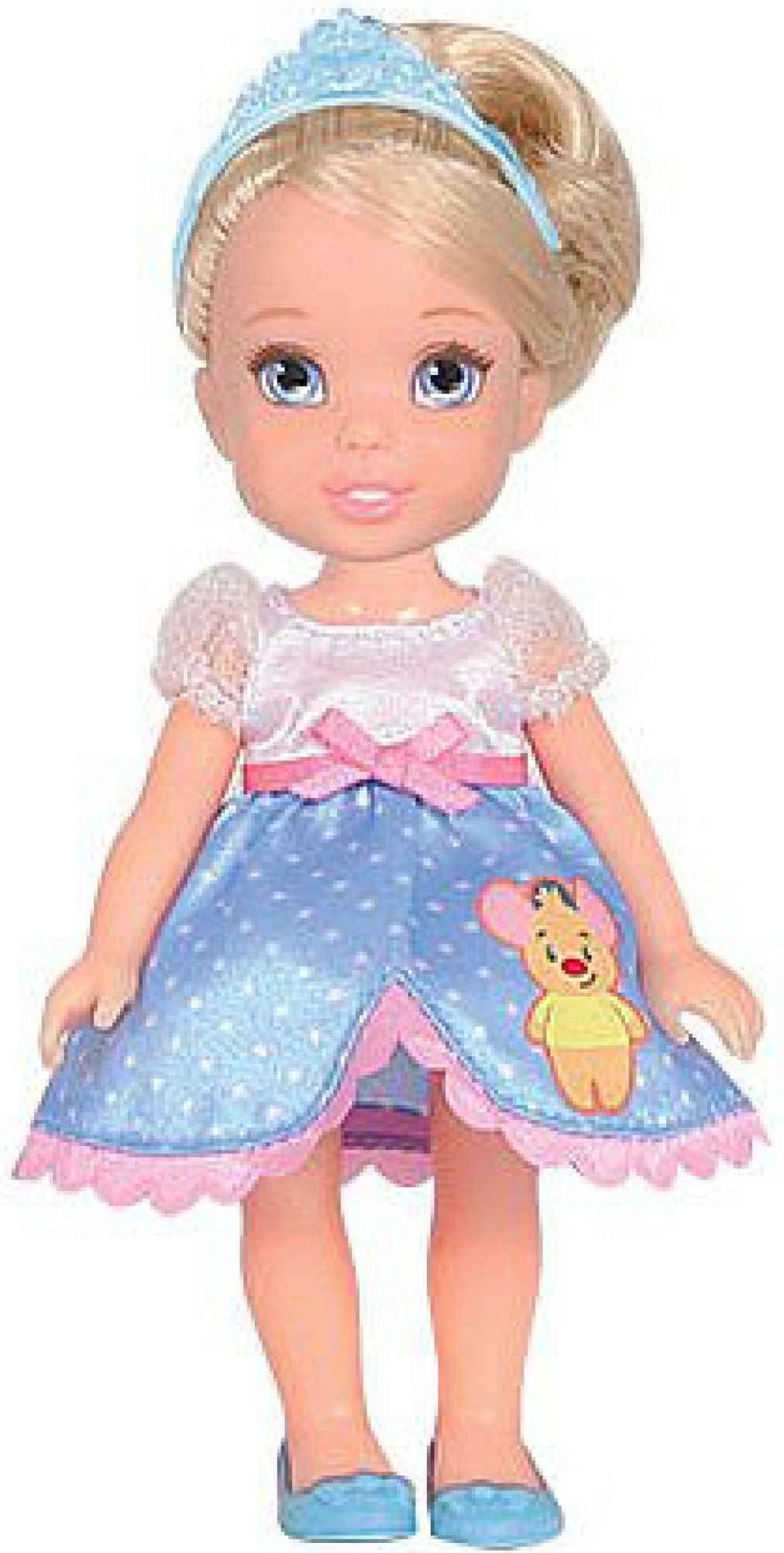 Золушка Disney Princess одета в светло-голубое пышное платье, на юбке которого симпатичная аппликация. На ногах Золушки детские балетки, а на голове корона с блестящими камушками. Голову, ручки и ножки игрушки можно поворачивать, а волосы расчесывать гребнем, входящим в набор Disney Princess. Кроме гребня-расчески в набор входит мини-фигурка мышонка, который разнообразит игры Вашей дочки.